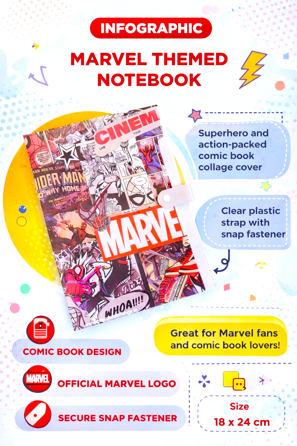 The secure button closure ensures that documents stay safe and organized at all times. Whether used for school, home, or office purposes, this folder helps improve organization and saves time by keeping everything in one convenient place. It is perfect for kids who love superheroes and want stylish stationery.