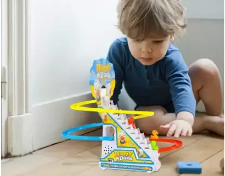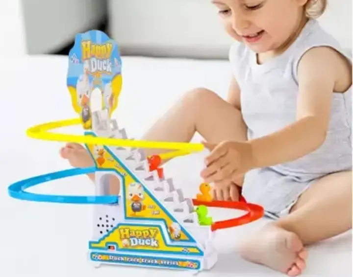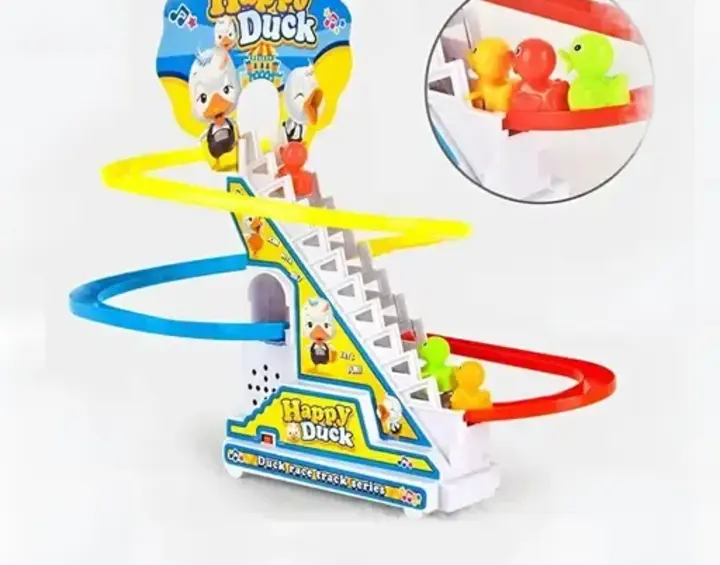 Ducks Climb Stairs Toy Roller Coaster, Electric Duck Chasing Race Track Set, Fun Duck Stair Climbing Toy with Flashing Lights Music and 3 Ducks, Small Ducks Climbing Toys