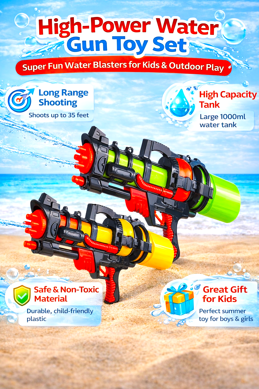 Perfect as a summer gift, this water blaster toy is ideal for birthdays, holidays, and outdoor adventures. Create unforgettable memories with exciting water fights, laughter, and fun moments. This water gun set is a must-have summer toy for every child who loves outdoor play.