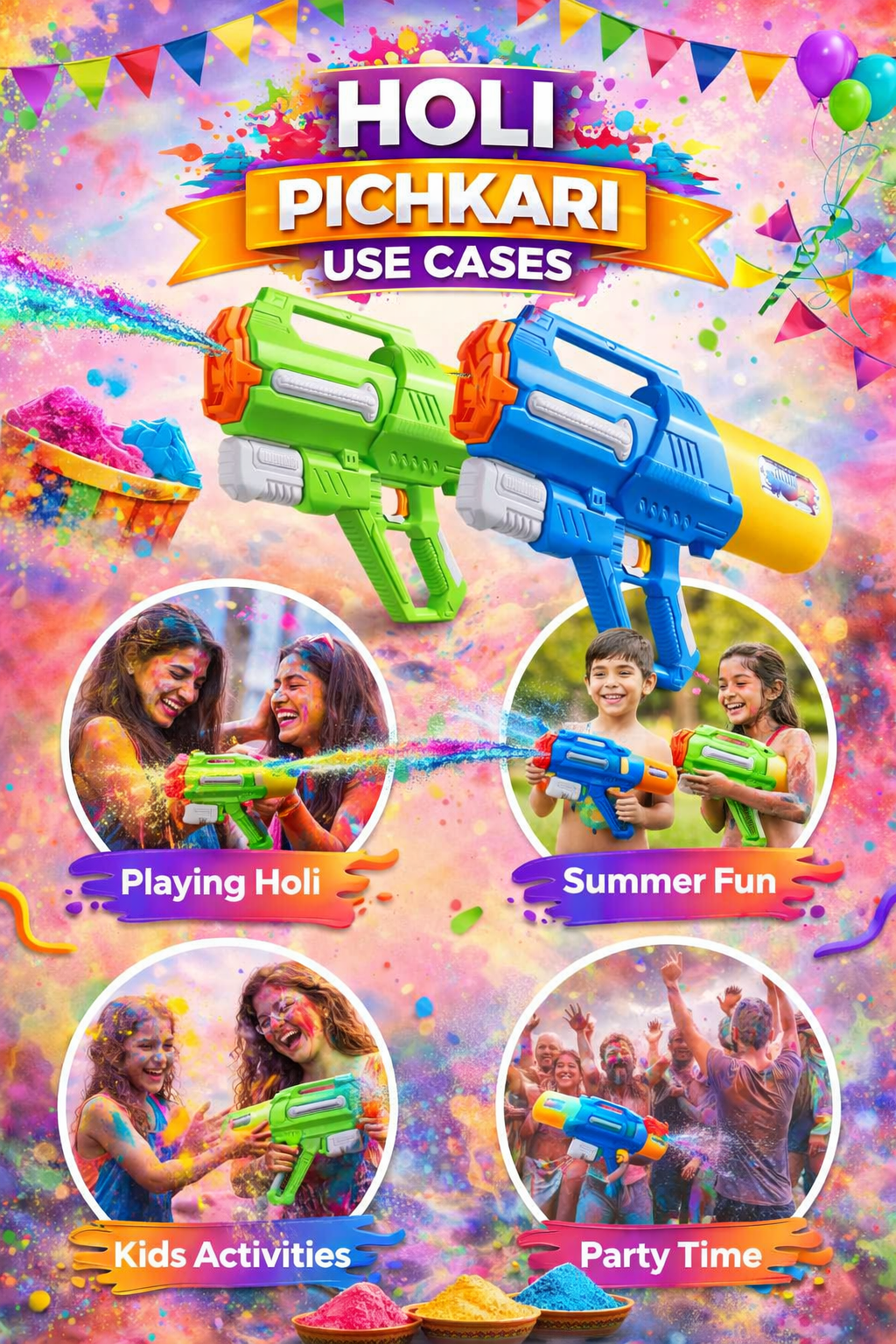 🌈 Bright & Attractive Colors – Vibrant festive design adds extra joy and excitement to Holi celebrations.