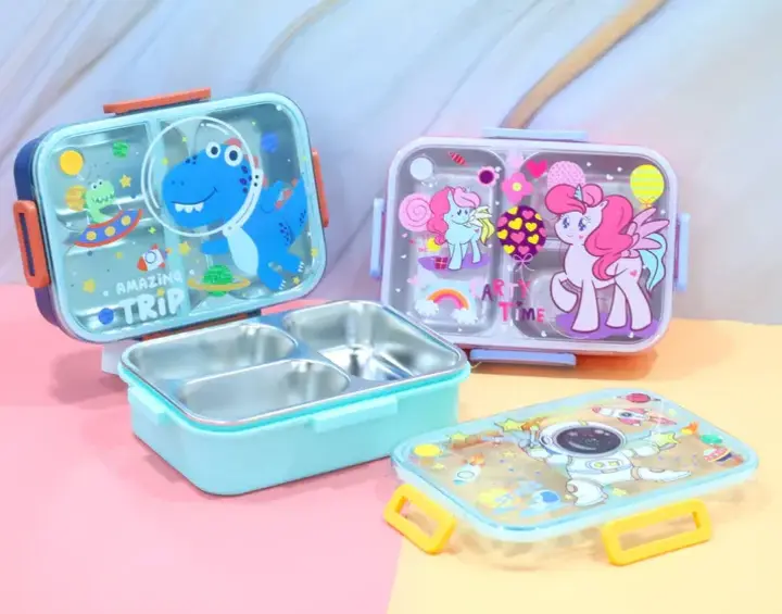 Lunch Box with Steel Spoon and Chopsticks: This set of three premium steel lunch boxes includes a lunch box, one steel spoon, and two steel chopsticks. It comes in a small surprise box.