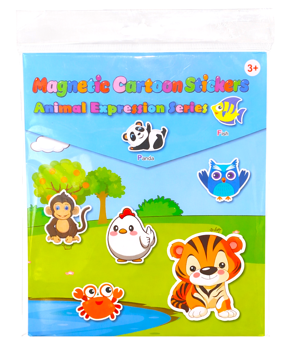 Arka Magnetic Alphabet Stickers in different themes (animals, insects, farm animals) with both uppercase and lowercase letters. There’s also a set of magnetic number stickers featuring basic arithmetic. The packaging indicates they are suitable for ages 3+ and come with 44 or 52 pieces. The overall aesthetic is bright, colorful, and child-friendly.