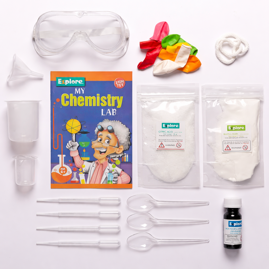 This science experiment kit includes essential lab tools, measuring equipment, and experiment materials that allow children to perform multiple chemistry-based activities at home. Each experiment is designed to be age-appropriate, easy to follow, and engaging, helping kids build confidence as they explore reactions, colors, and simple scientific processes.