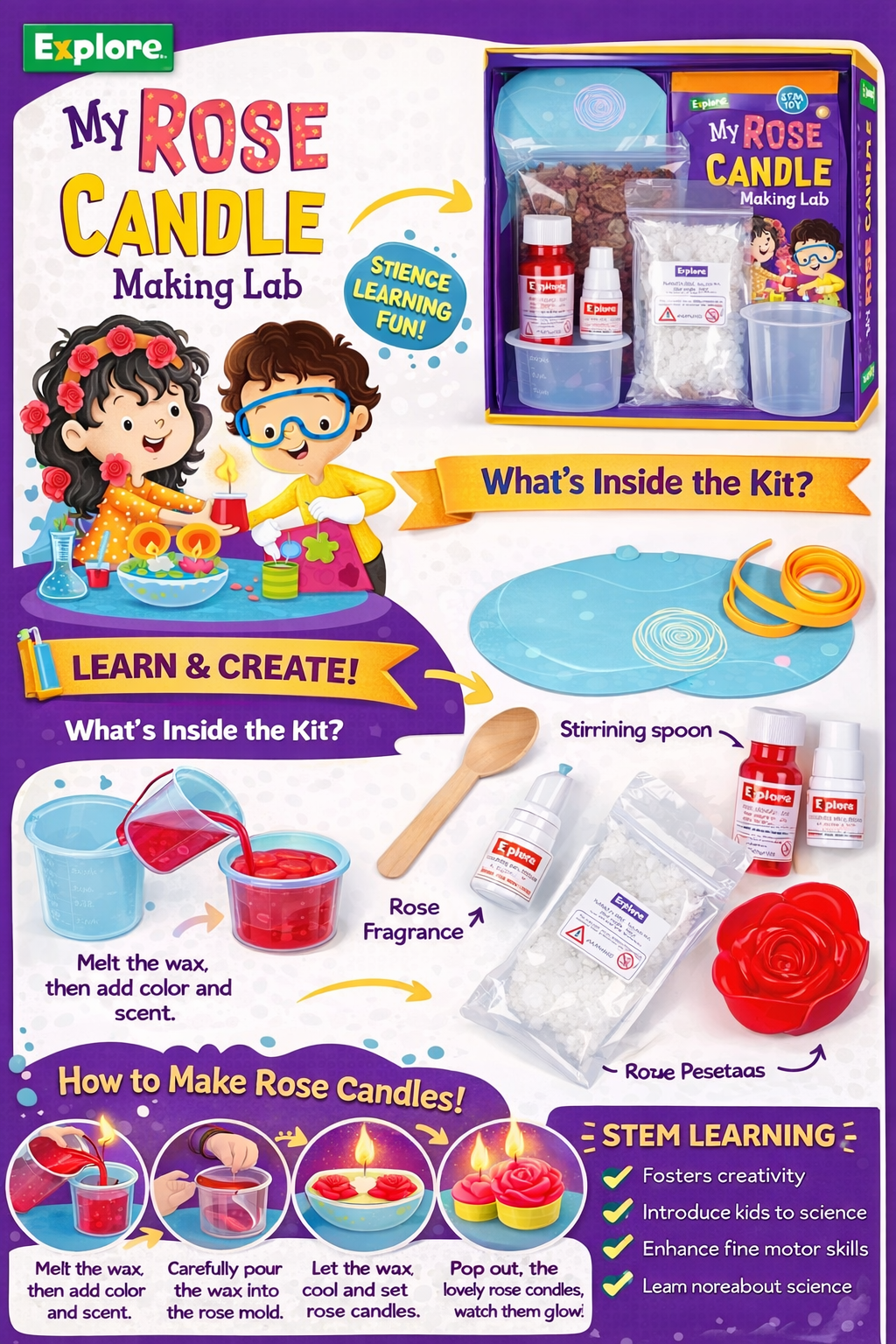 My Rose Candle Making Lab is a fun and engaging STEM candle craft kit designed to introduce kids to the exciting world of science through creativity. This hands-on kit allows children to explore basic scientific concepts while making their own beautiful rose-scented candles. By combining learning with play, it transforms science into an enjoyable and memorable experience for young minds.