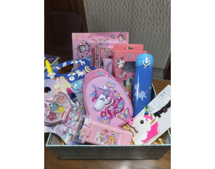 A magical and vibrant gift hamper bursting with unicorn charm and dreamy colors, perfect for little girls who adore all things whimsical. It includes a curated mix of stationery, school accessories, beauty playsets, and cute utilities—making it ideal for birthdays, return gifts, or back-to-school surprises.